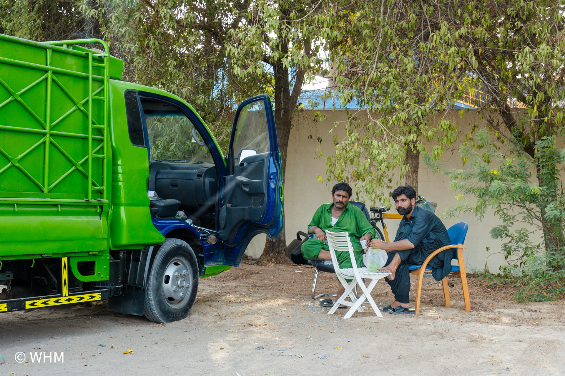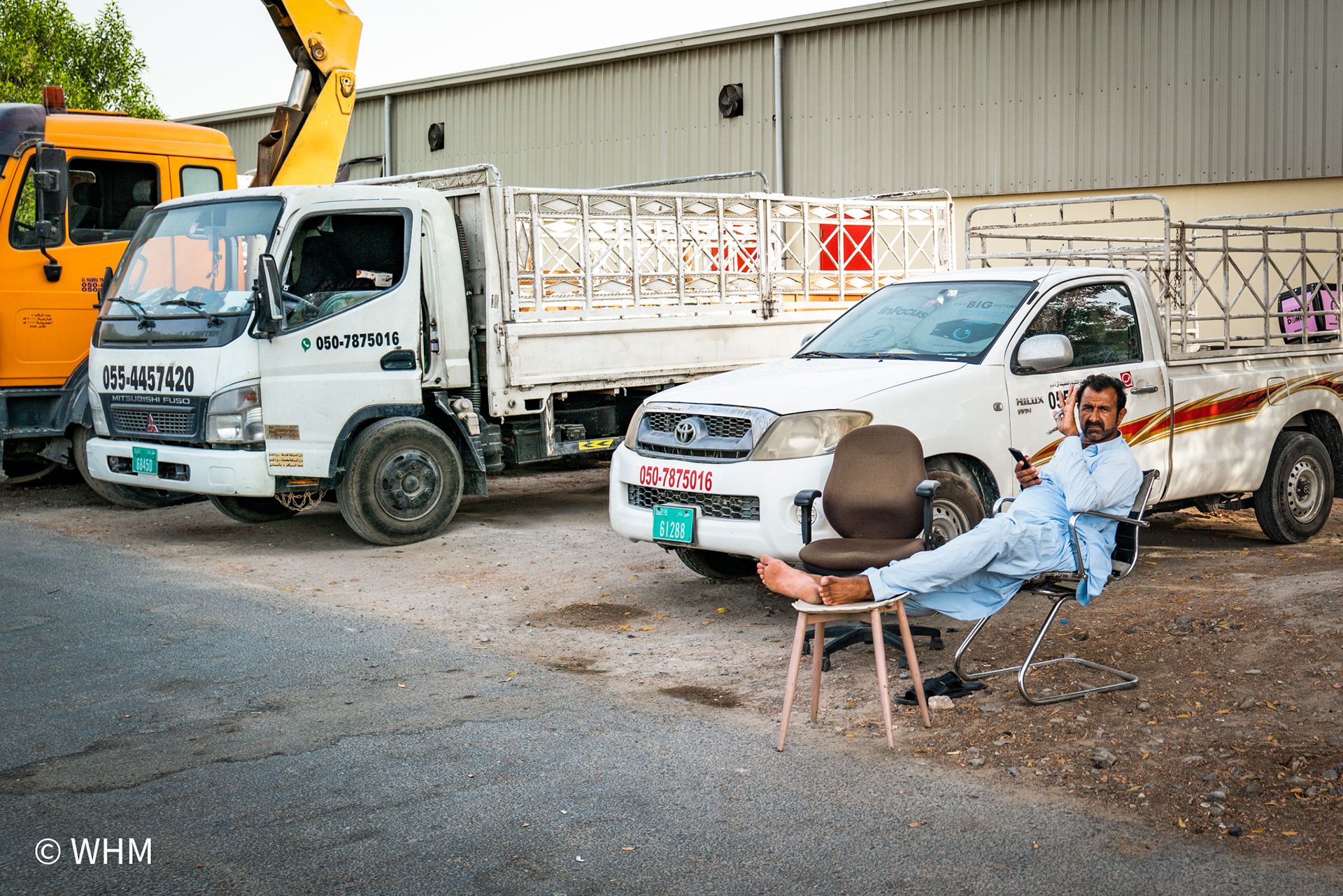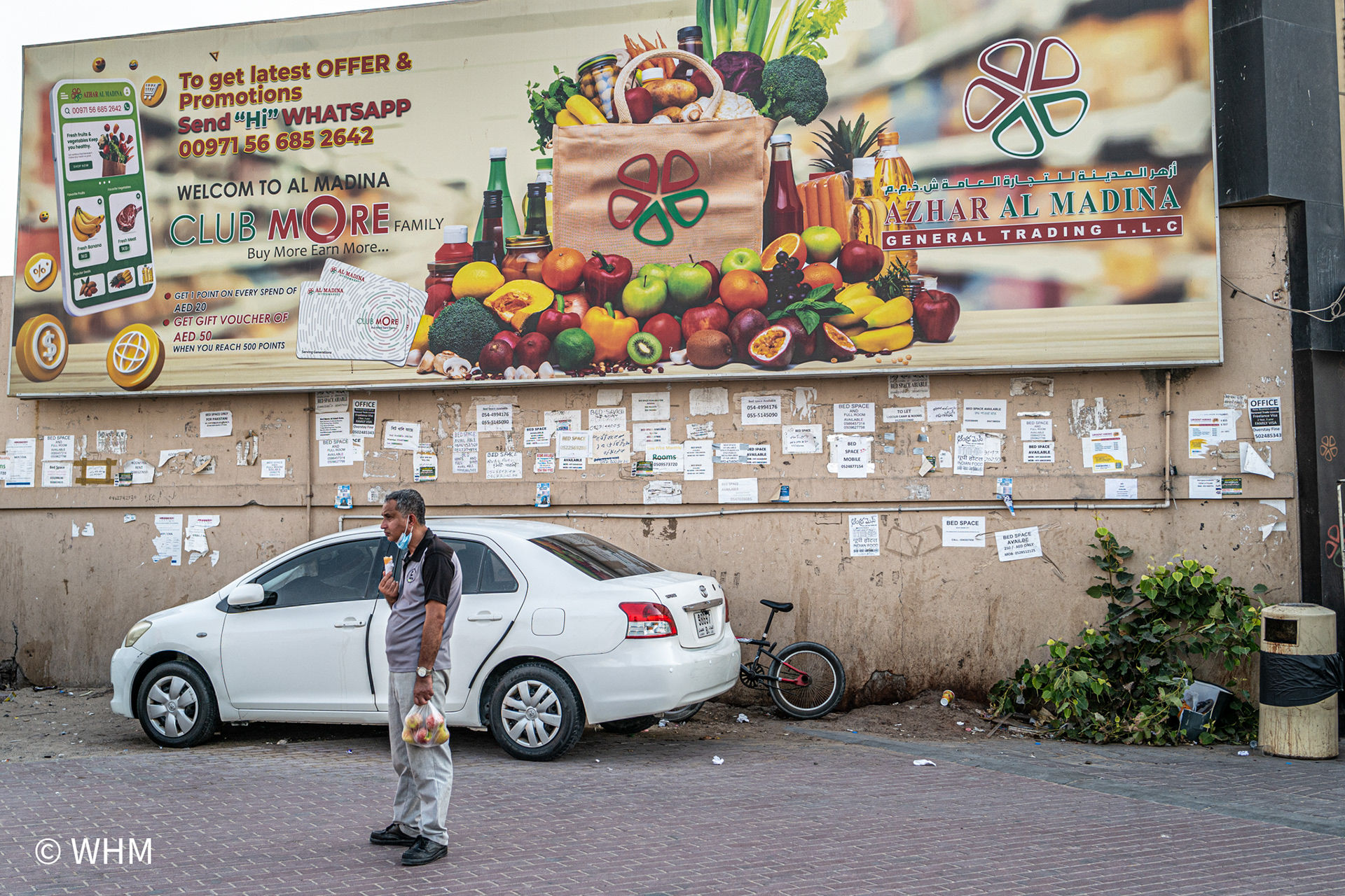 This part of Dubai is populated mainly by people from India, Pakistan, and Bangladesh and is very colourful and vibrant. They are blue-collar workers. I am discovering the Al Qouz area daily and making photographs during different hours of the day. I must blend in and be causal as part of them but being a girl walking around in an area with mostly men. I tend to drive around in my car then stop to capture a moment and move away.