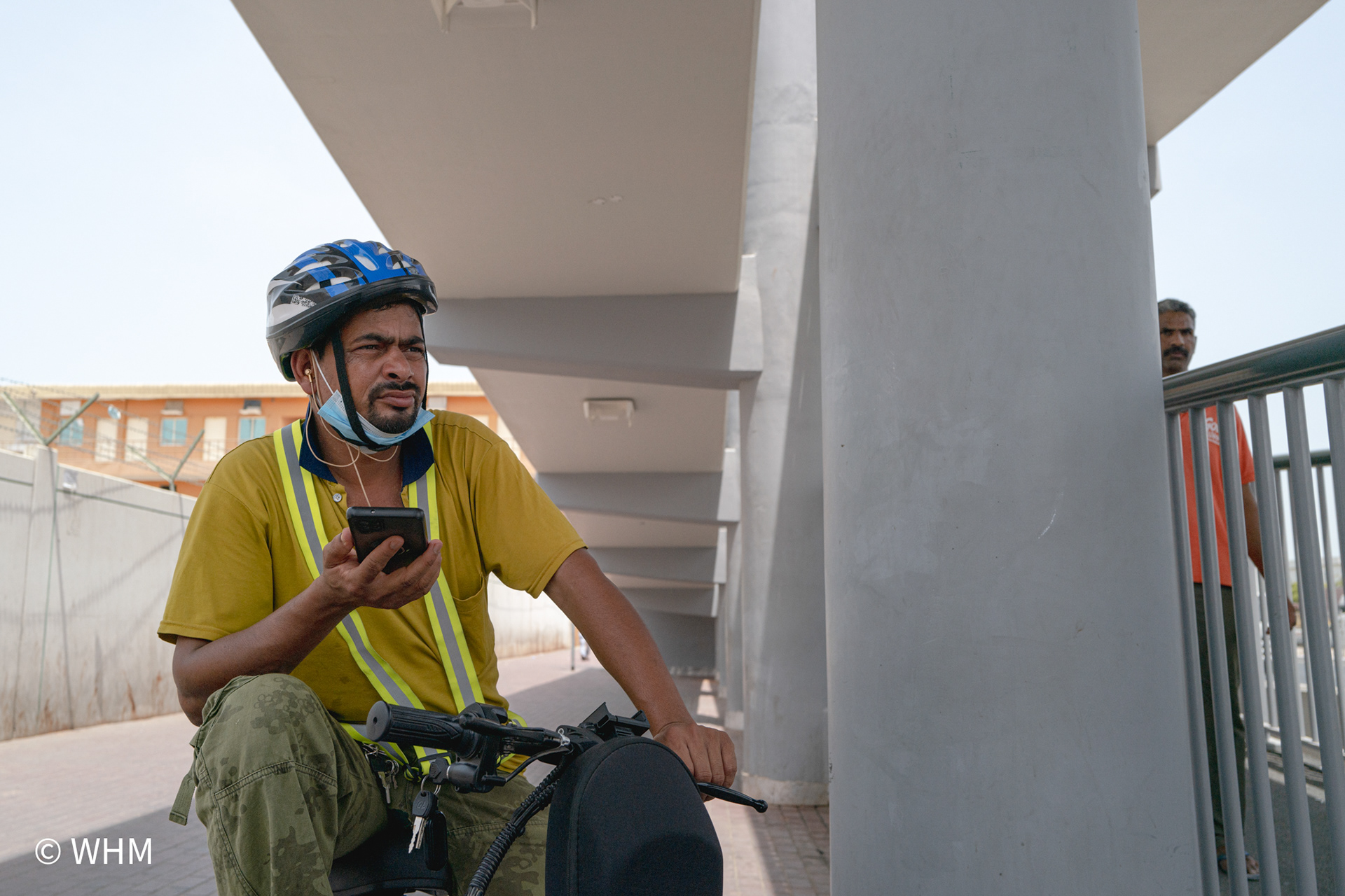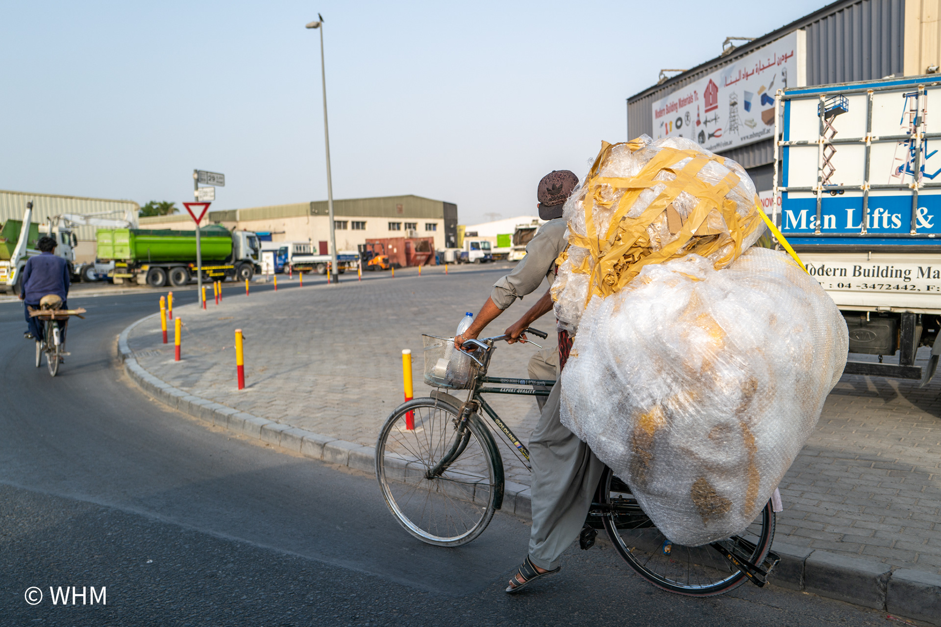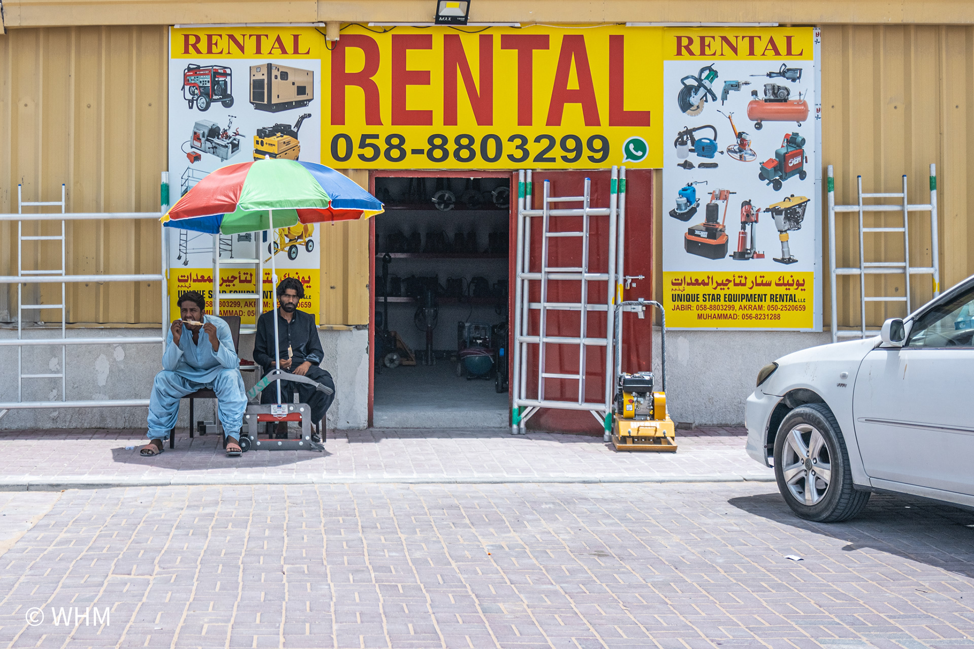 This part of Dubai is populated mainly by people from India, Pakistan, and Bangladesh and is very colourful and vibrant. They are blue-collar workers. I am discovering the Al Qouz area daily and making photographs during different hours of the day. I must blend in and be causal as part of them but being a girl walking around in an area with mostly men. I tend to drive around in my car then stop to capture a moment and move away.