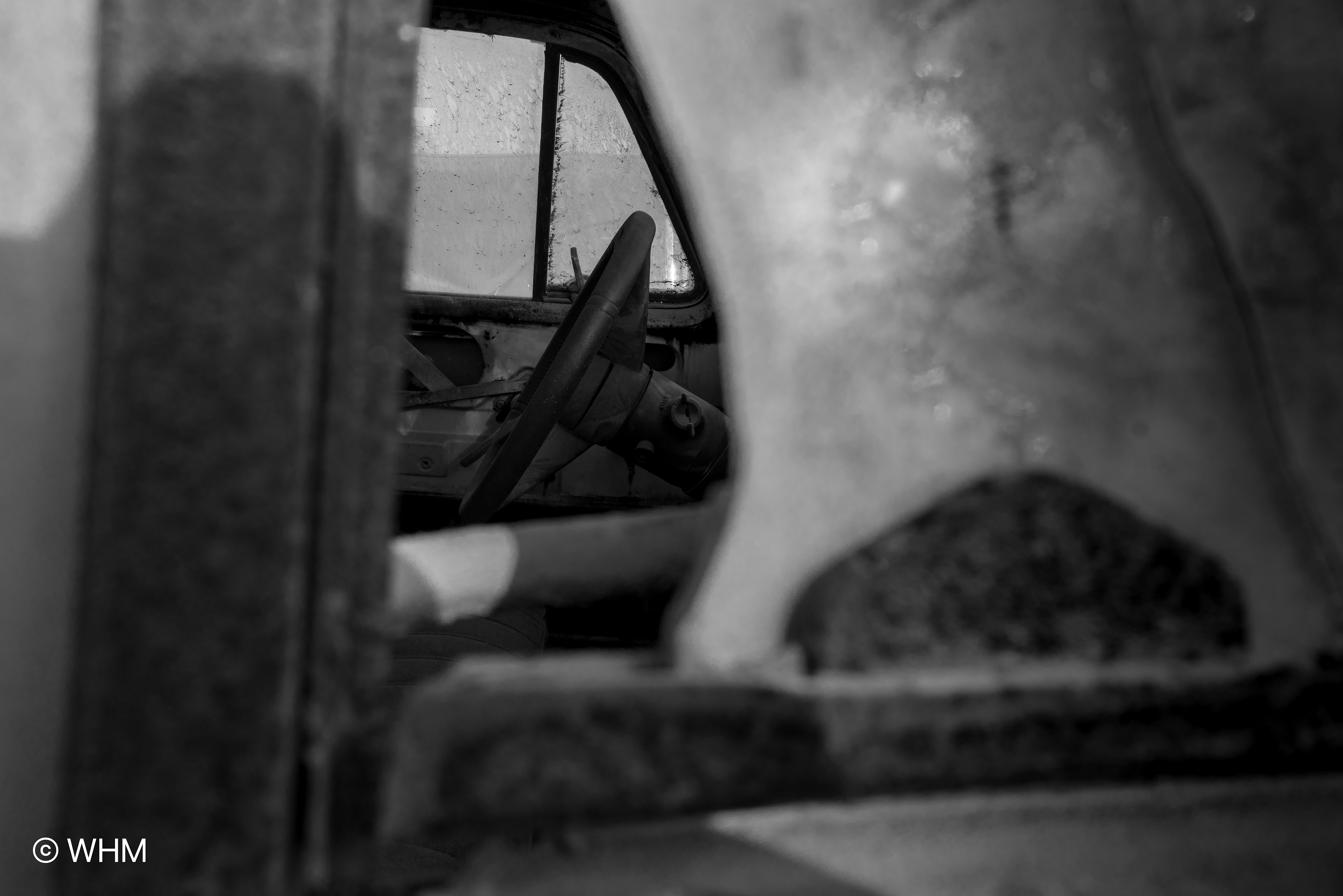 I made about 100 images of all the cars, but mostly this rusty Chevrolet, and from all angles. When I could not open the doors; as the people working the car workshop were watching me; I managed to make my photograph through a small hole in the broken window of this Chevrolet. This single image sums up the feeling I had when I was making the images outside on a dusty road in 38 degrees Celsius (100 Fahrenheit) and being watched. I was very happy and satisfied with the results I got. Certainly, I had to go home to a cool shower. Mission accomplished; goal achieved.