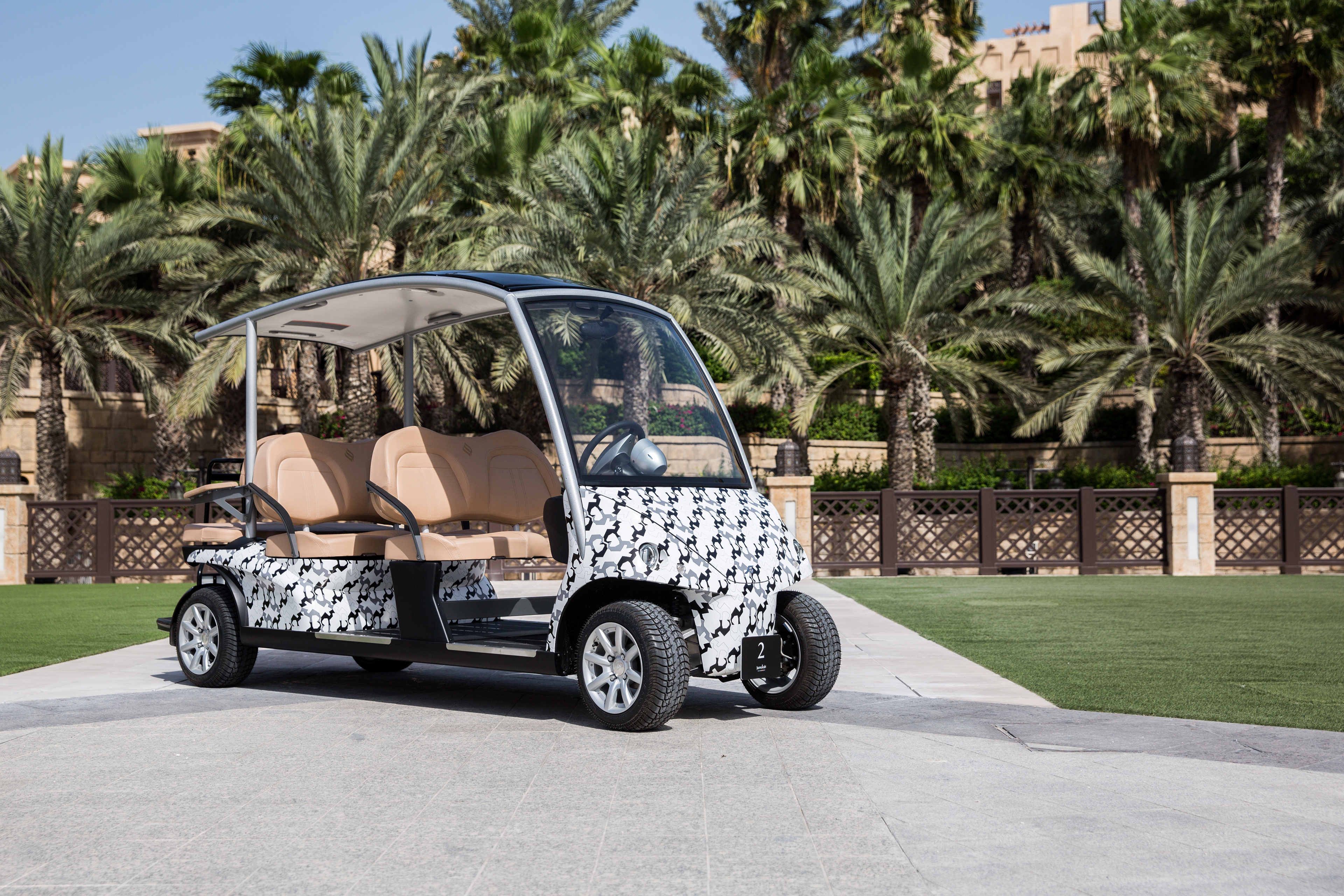 My Camel and Gazelle pattern on the new fleet of Jumeirah Buggies by Garia, in collaboration with Dubai Culture and Brand Dubai.