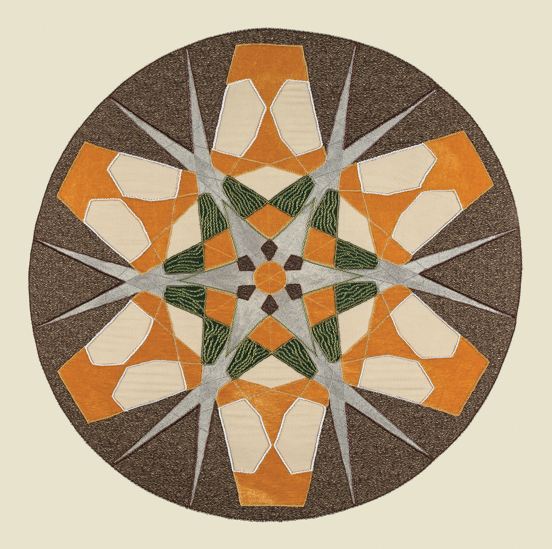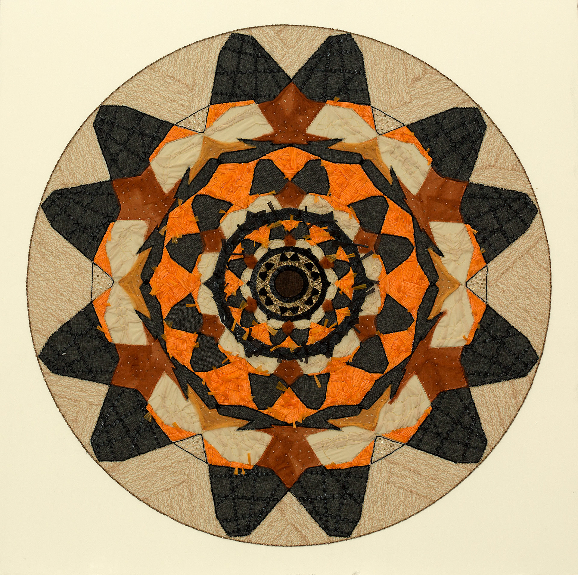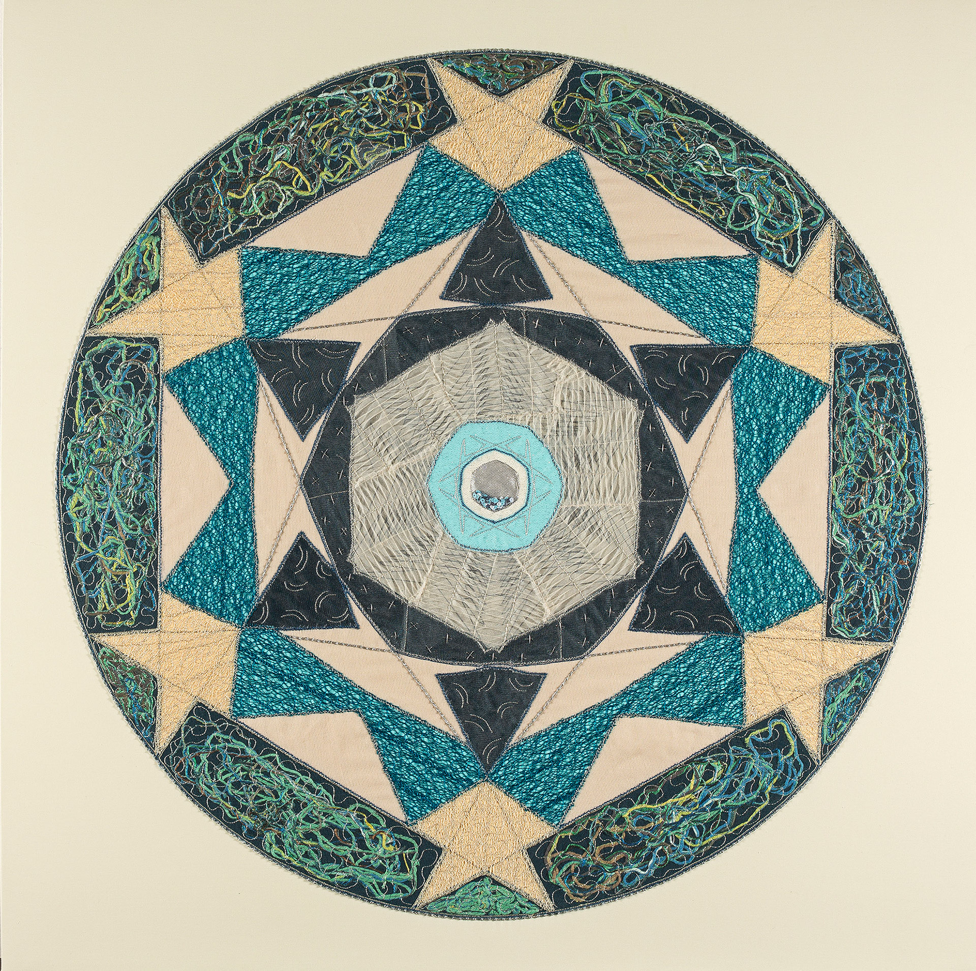 FORT - screen-print, paint and embroidery on fabric, 86cm diameter, 2016