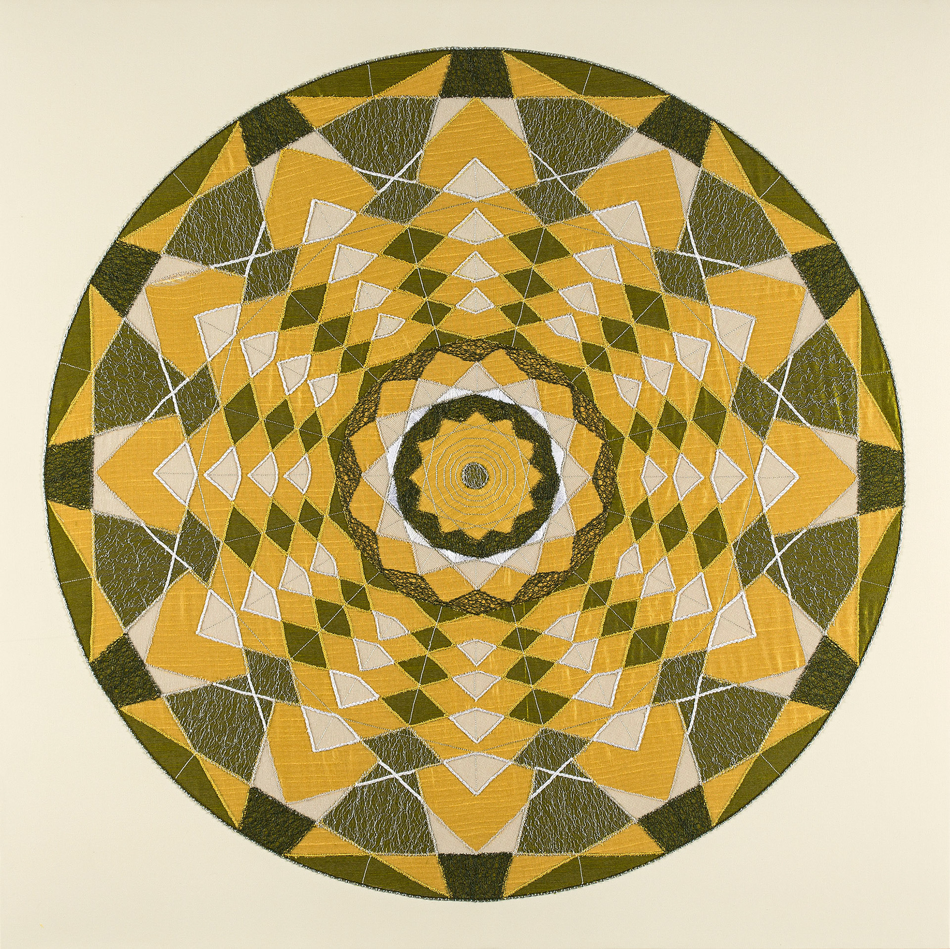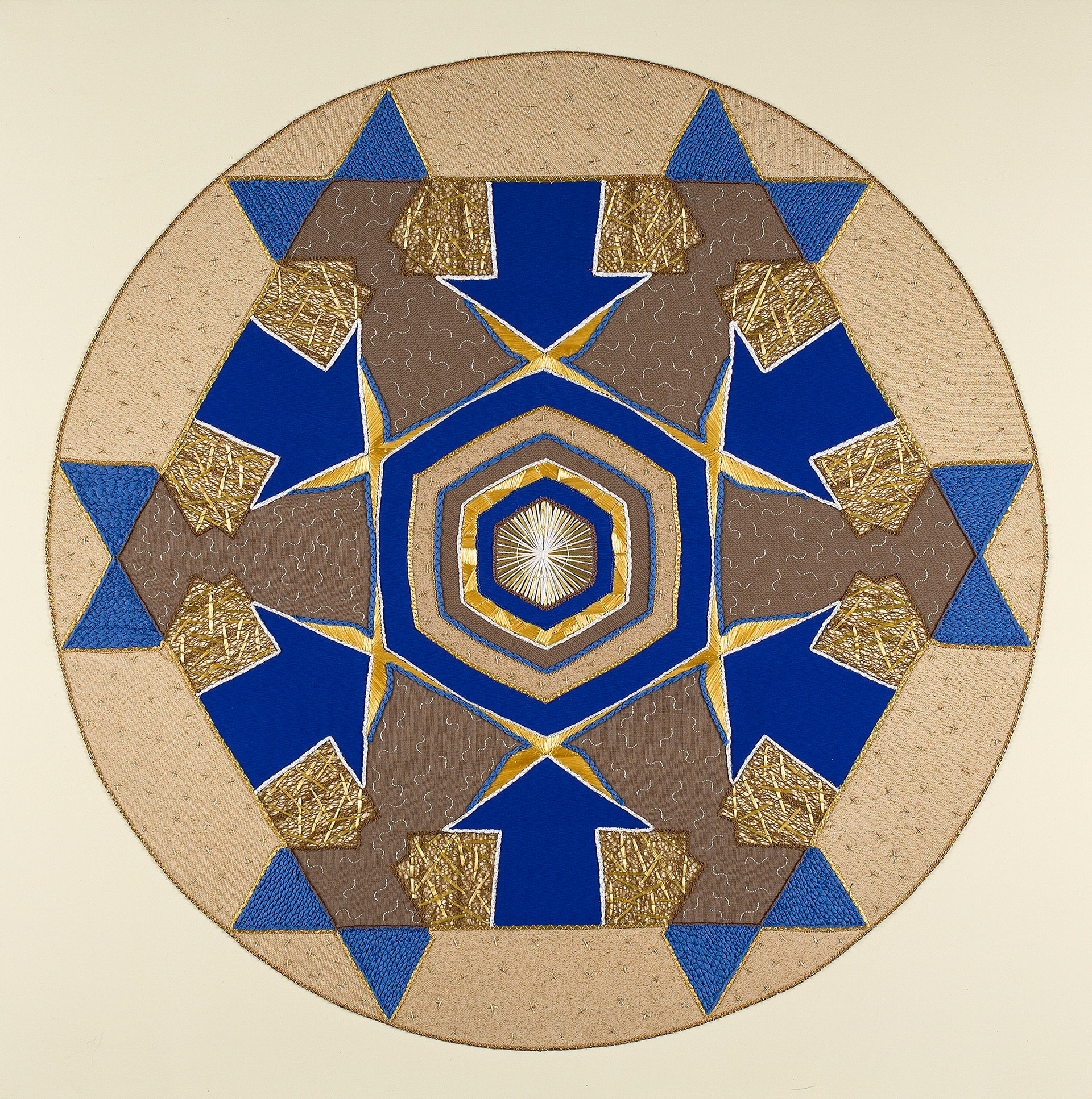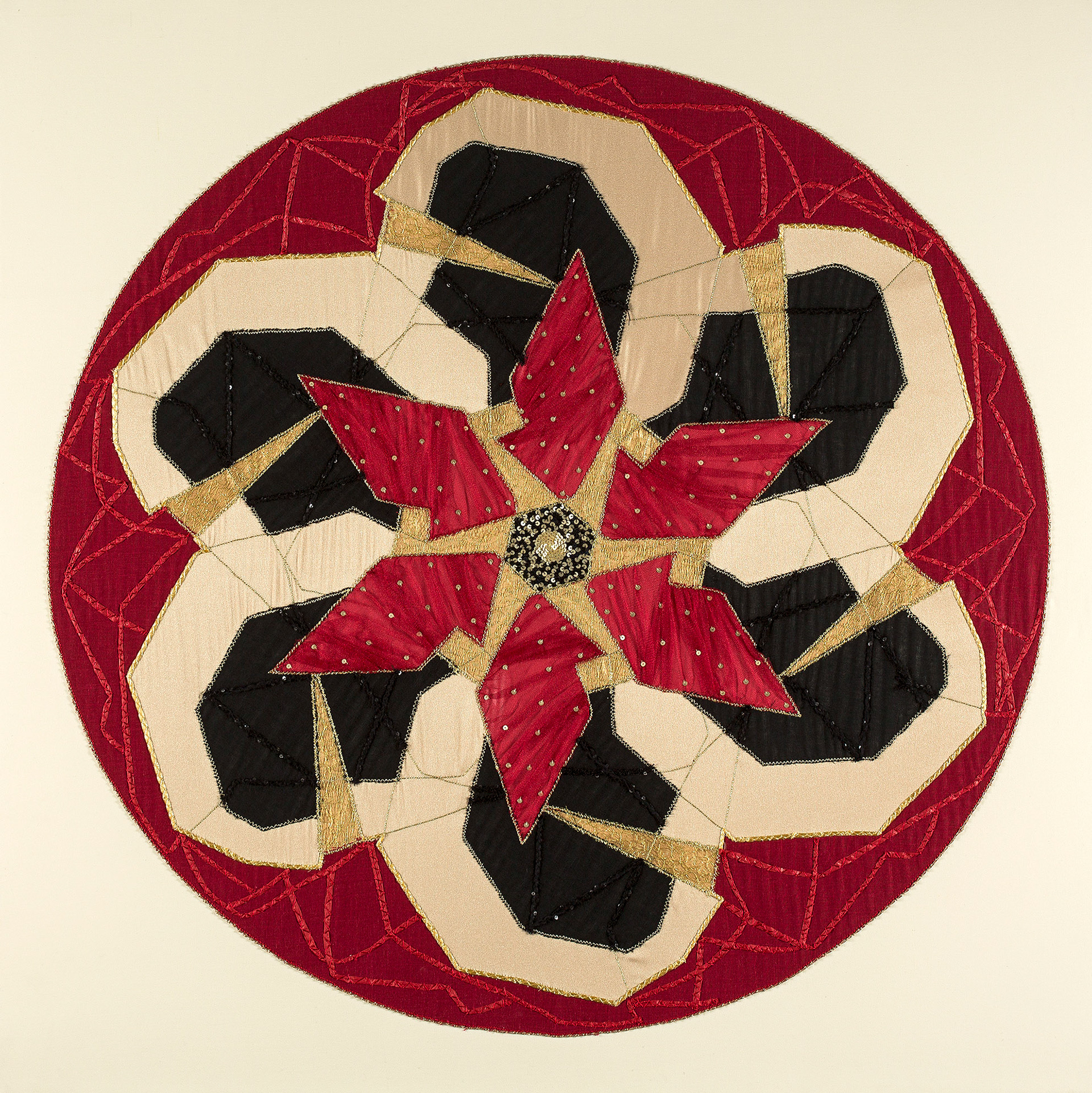 FORT - screen-print, paint and embroidery on fabric, 86cm diameter, 2016
