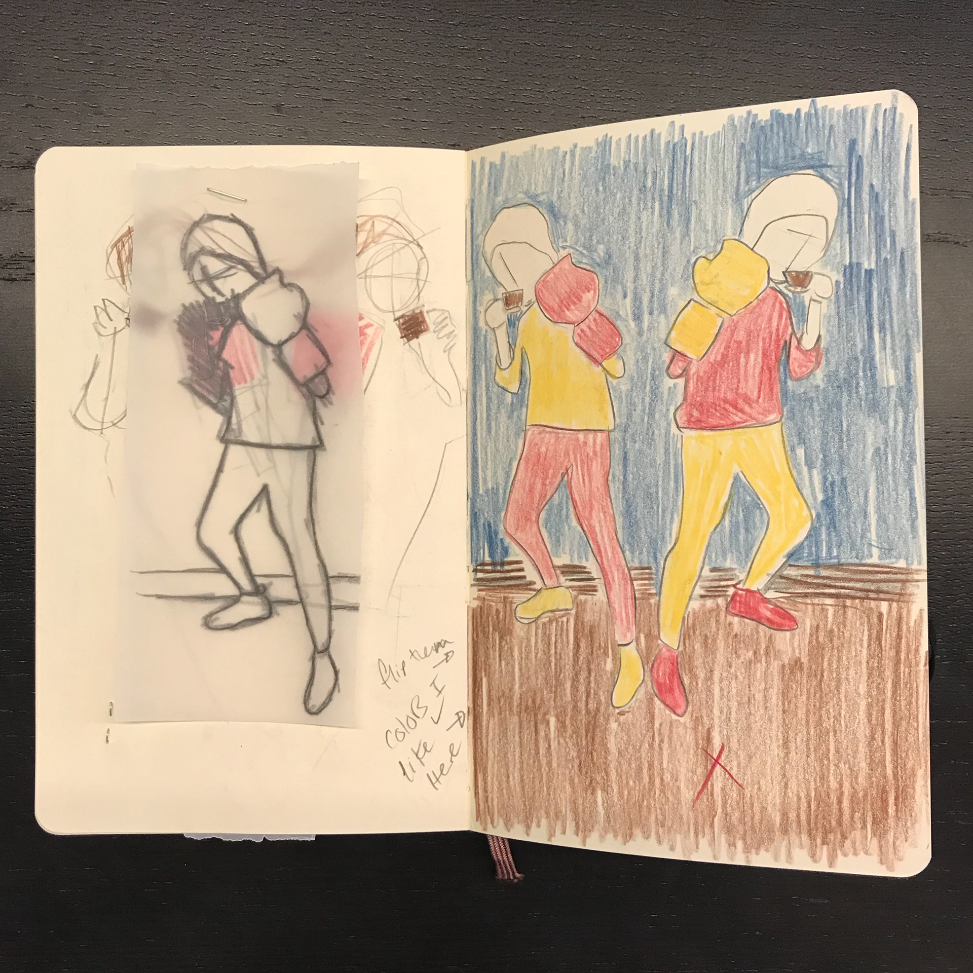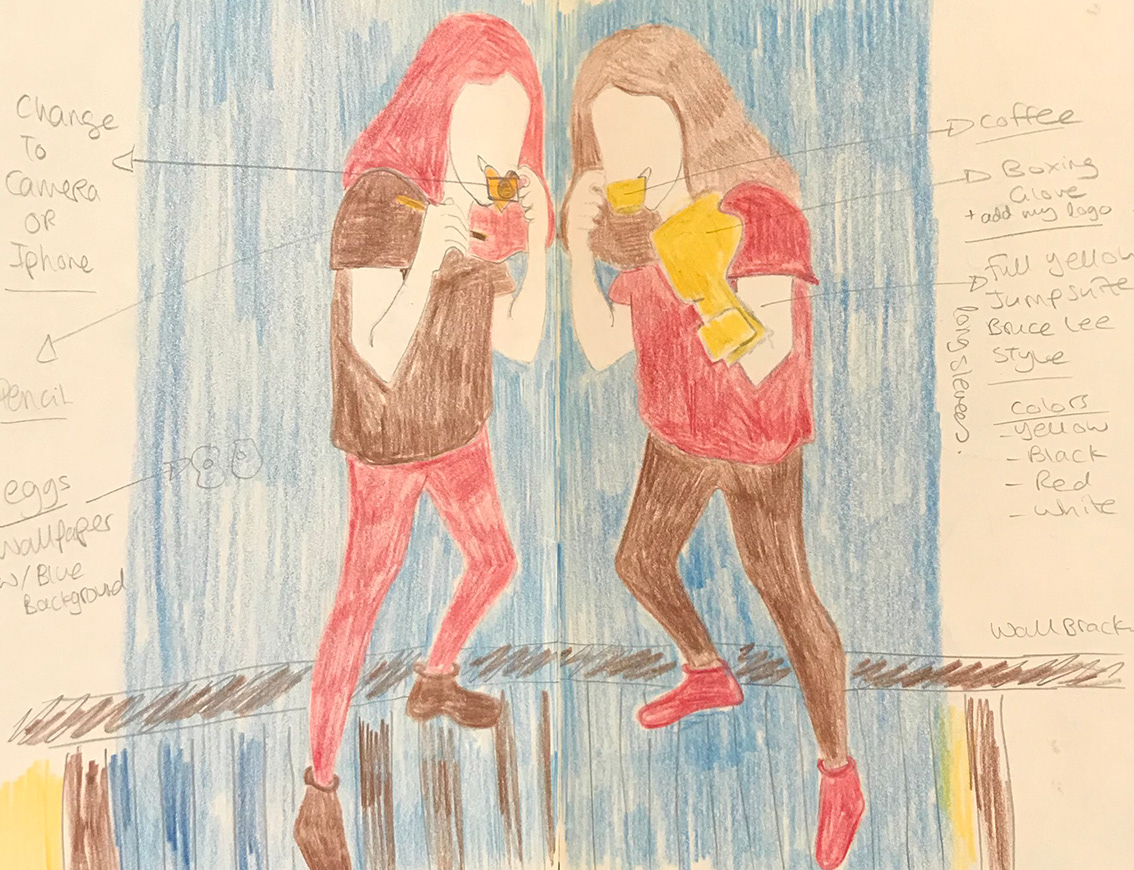 My name is Wafa and I am an artist. I love sports and practice many different sports that include boxing. For this project, I choose to depict myself as an artist and a sporty person.