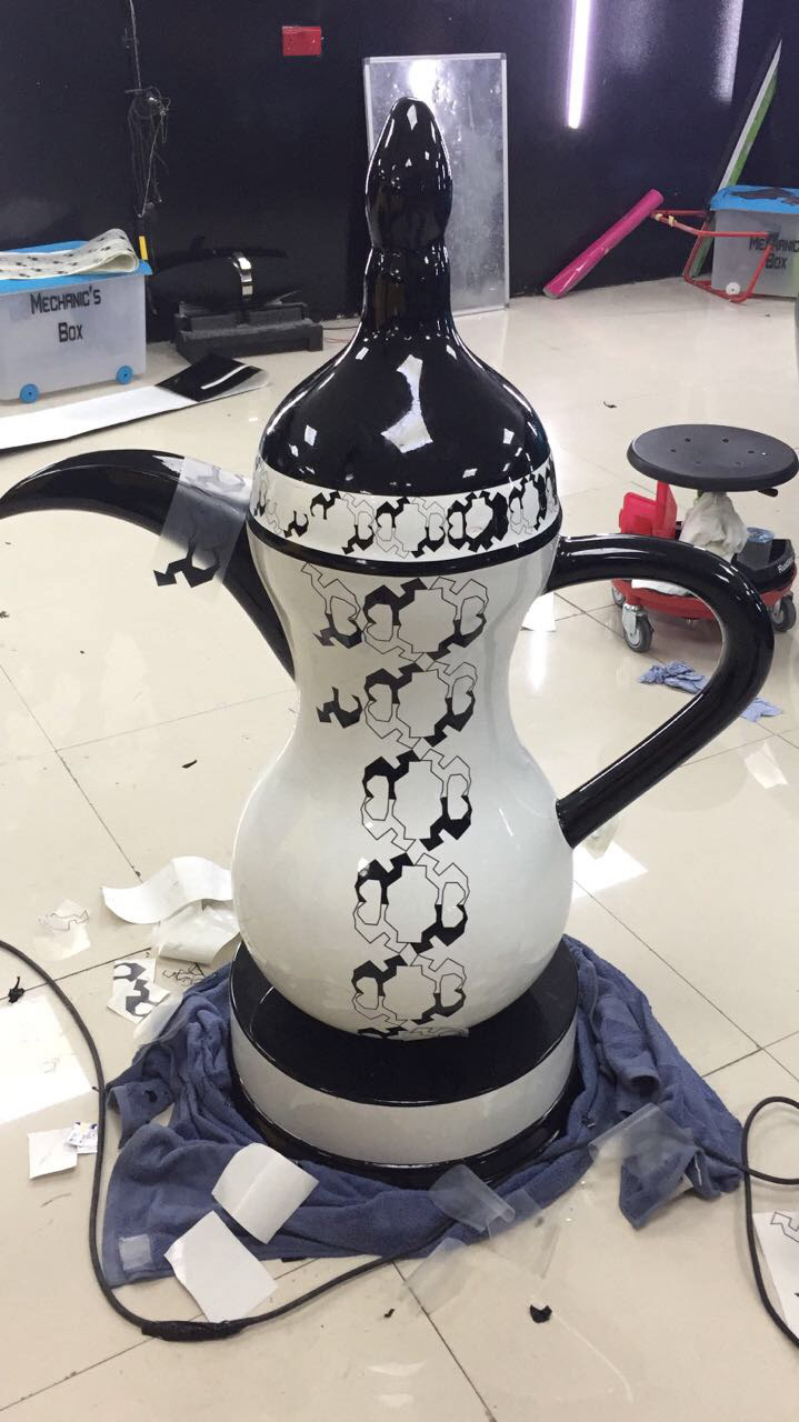 Architectural Digest produced large sized Dallahs, as a symbol of the region's genuine hospitality and invited artists to customize it using their own unique style.